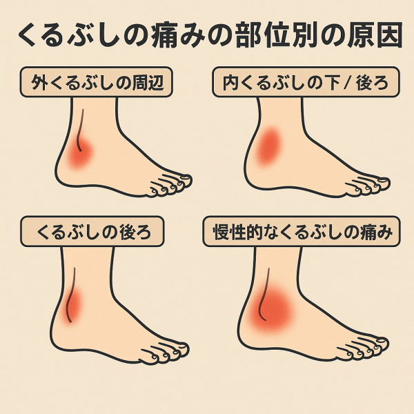 (https://abe-seikei-cli.com/2025/03/17/〜)では、くるぶし周辺の痛みは**靴の種類・歩き方・足裏アーチの低下**などの影響も大きいと言われています。