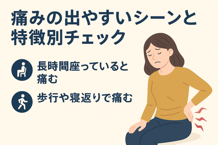 「歩くときだけ痛い」「寝返りでズキッとする」「押すと響く」など、痛みの出方にもいくつかの特徴があります。