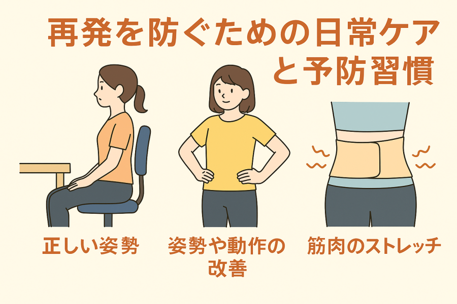 特に「中殿筋」「腸腰筋」「腹横筋」などを意識したストレッチや軽い運動は、再発を防ぐうえで効果的とされています。