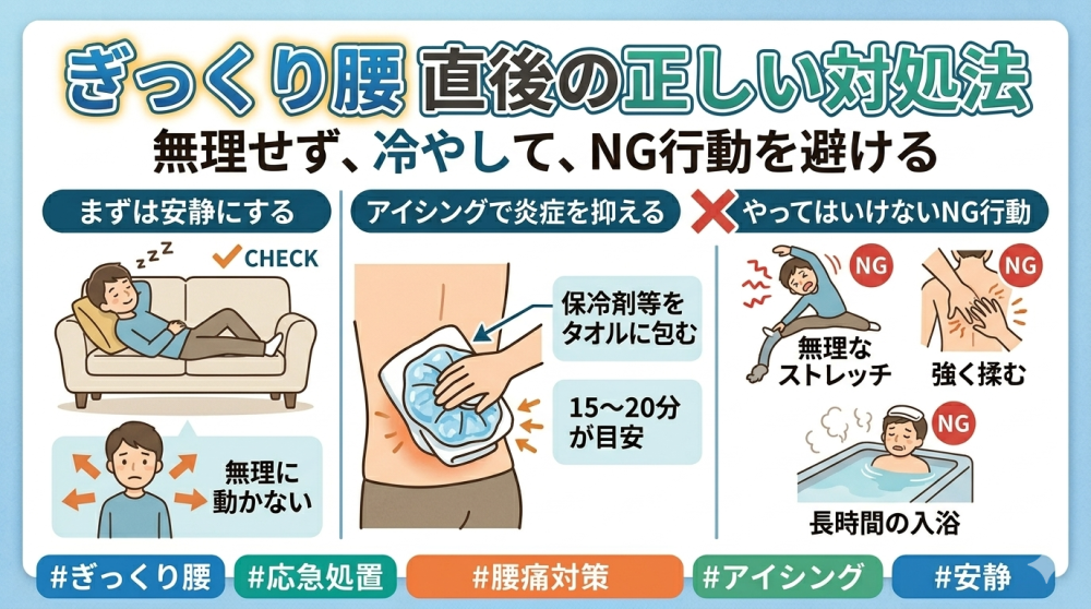「ぎっくり腰になった直後って、どうすればいいんですか?」
