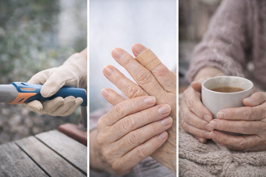 日常対策というと、つい「何をするか」に目が向きますが、休むタイミングもかなり大事だと言われています。指先がこわばりやすい人は、冷えで動かしづらさを感じることもあるため、手元を冷やしすぎない工夫が役立つ場合があるようです。さらに、痛みや腫れがあるときに無理に動かしたり、強くもんだりするのは避けたほうがよいとも紹介されています。つまり、ヘバーデン結節の予防は特別なことより、使いすぎない・支える・休ませるを続けることが中心だと考えられています。毎日の積み重ねが、進行を防ぐ行動につながると言われています。