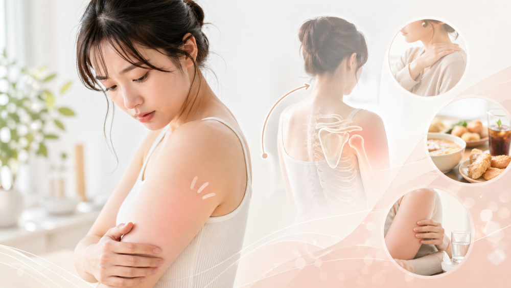 二の腕は、むくみや冷えの影響で重たく見えることもあると言われています。特に、肩こりや首こりを感じやすい方は、腕まわりの巡りが悪くなりやすいかもしれません。