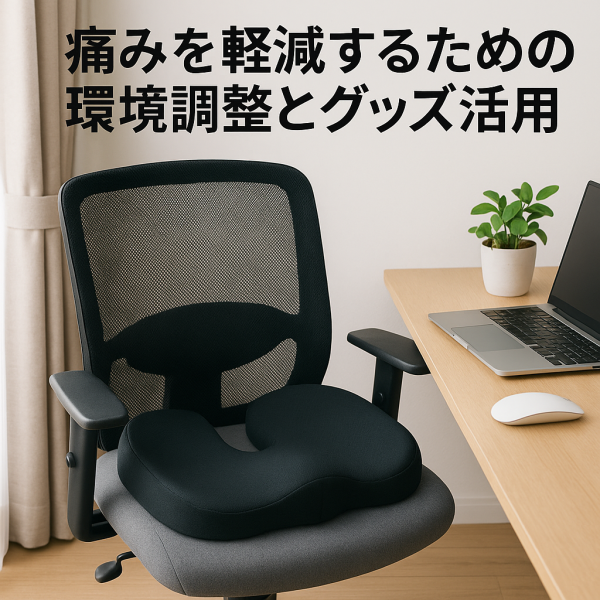 また、椅子の高さや背もたれの角度を調整し、足裏がしっかり床につく姿勢を意識することも大切です。クッションやタオルを活用して、骨盤が立つ状態をサポートするのもおすすめです。
