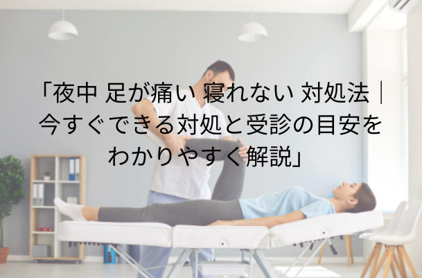 一番避けたいのは、「そのうち落ち着くだろう」と何日も我慢することです。夜中の足の痛みは、筋肉疲労や冷えだけでなく、神経や関節の負担が関係している場合もあると言われています。片足だけ強く痛む、しびれを伴う、何度も繰り返すといったときは、自己判断だけで引っぱらず、早めに来院先を考えることが大切とされています。