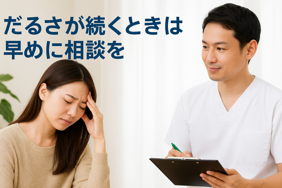 「一晩しっかり寝たのに、まだだるい…」「数日続けて寝過ぎてしまう…」そんな状況が長引くと、不安になりますよね。ここまでご紹介したセルフケアや生活習慣の工夫で改善する場合もありますが、もしだるさが慢性的に続くようであれば、専門家に相談することが大切だと言われています。