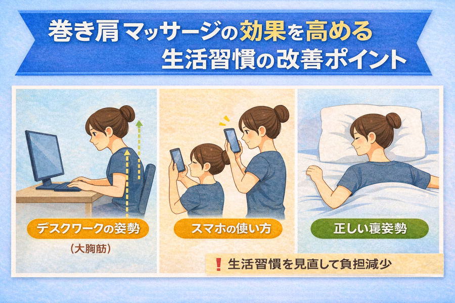 ④ 巻き肩 マッサージの効果を高める生活習慣の改善ポイント