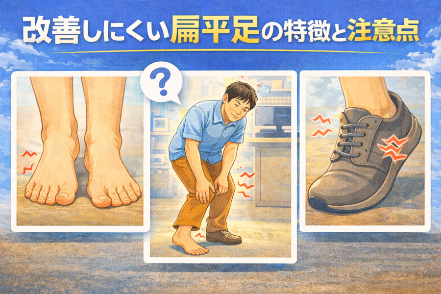 こう感じている方は少なくありません。参考記事でも、扁平足の中には改善を実感しづらいタイプがあると言われています。