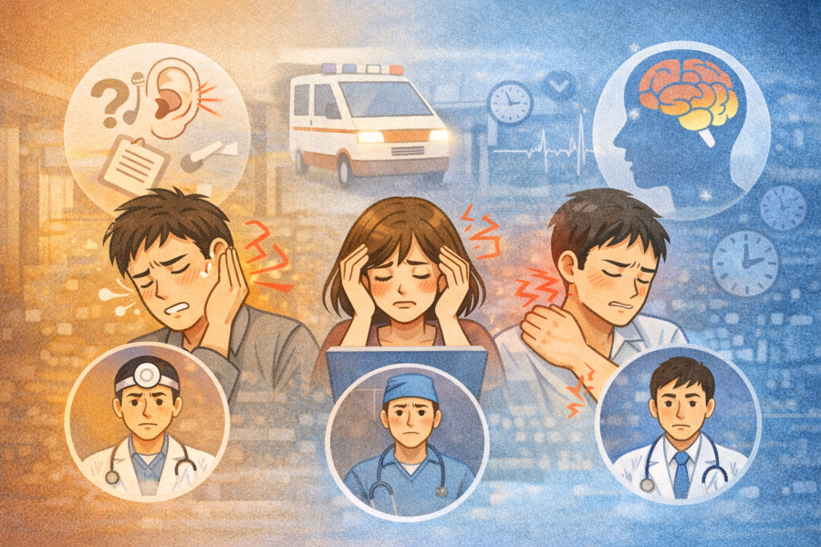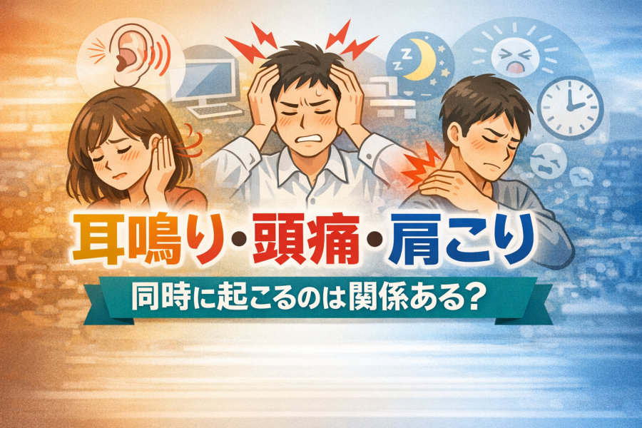 「最近ずっと寝不足かも」「気づけば肩に力が入っている」そんな状態はありませんか。耳鳴り・頭痛・肩こりが同時に出るときは、体が無理をため込んでいるサインとして現れることもあるようです。まずは作業姿勢、目の使いすぎ、休憩不足、ストレスの重なりを振り返ってみると、原因の手がかりが見つかるかもしれません。