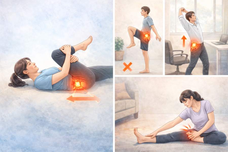 例えば、股関節まわりをゆっくり動かすストレッチや、お尻の筋肉を軽く使う運動は取り入れやすい方法の一つです。ポイントは、勢いをつけずに呼吸を止めないこと。強く伸ばそうとすると逆に力が入りやすくなるため、気持ちいい範囲で行うのが目安になります。