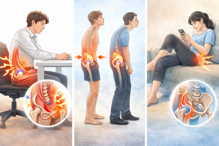 どちらにしても、姿勢が崩れることで股関節と腰のバランスが乱れ、特定の部位に負担が集中しやすくなると考えられています。「なんとなく姿勢が悪いかも…」と感じている場合は、ここも見直すポイントになると言われています。