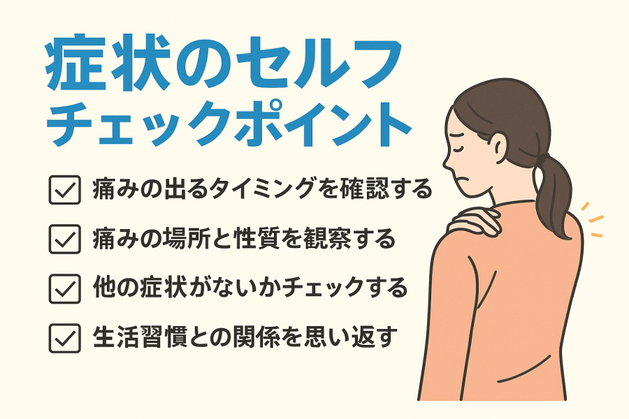 セルフチェックはあくまで目安です。痛みの程度や出方を整理することで、来院した際の触診や検査につながり、より的確な対応ができる可能性が高まると言われています。