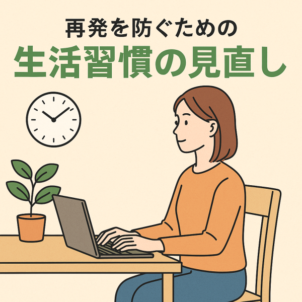 長時間同じ姿勢を続けない、休憩をこまめに入れる、深呼吸を意識するといった習慣が再発予防に有効とされています。また、ストレスや冷えも筋肉のこりに影響するため、体を温めたりリラックスする時間を確保することも大切です。