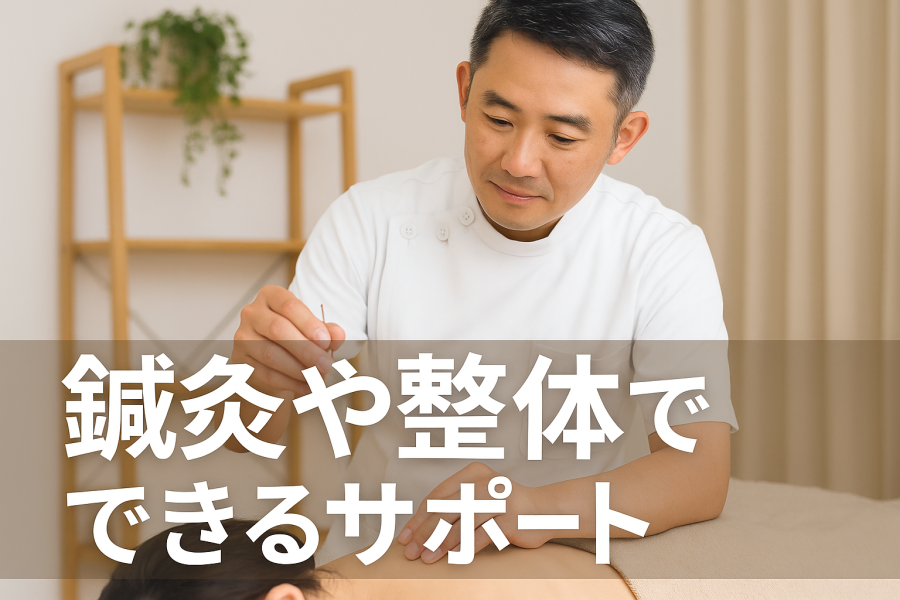 👉 鍼灸や整体は、体の自然な回復力を高め、原因にアプローチするサポートとして効果的です。