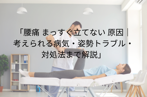「腰痛でまっすぐ立てない」と感じる状態は、腰の筋肉や関節、神経などに負担がかかっているときに起こりやすいと言われています。実際に来院される方の中でも、「体を伸ばそうとすると腰が固まる感じがする」「背筋を伸ばしたいのに途中で止まってしまう」といった声をよく聞きます。