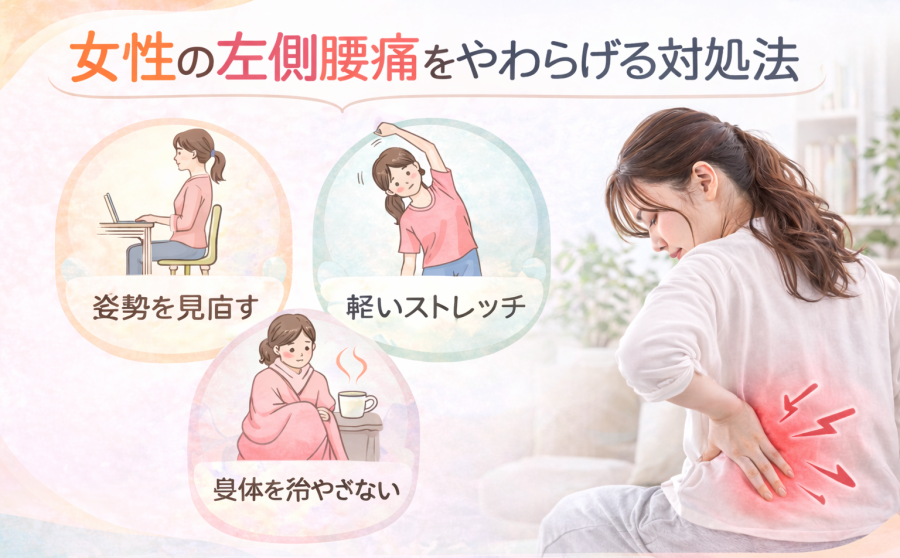 資料では、女性の左側腰痛は日常の体の使い方が関係することがあるため、生活習慣を見直すことが予防につながる場合があると言われています。