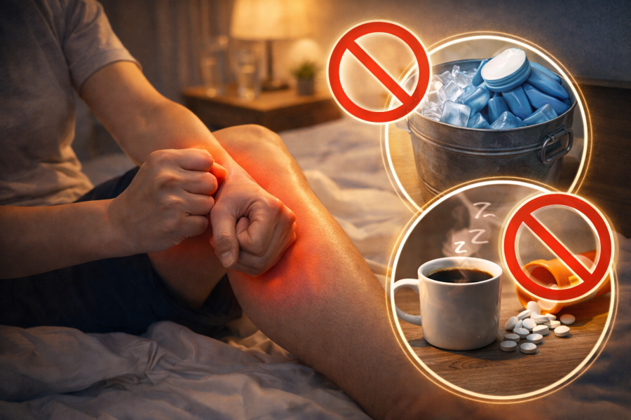 「少し動けばまぎれるかも」と思っても、動くほど痛みが増すなら無理はしないほうがいいと言われています。Mayo Clinicでも、脚の痛みはまず負担を減らし、軽い使用やストレッチは状態を見ながら行う流れが示されています。また、夜の足のつりに関しては、カフェインやアルコールを控える工夫が紹介されています。寝つきをよくしたい夜ほど、その場しのぎで頼りすぎないほうが安心です。
