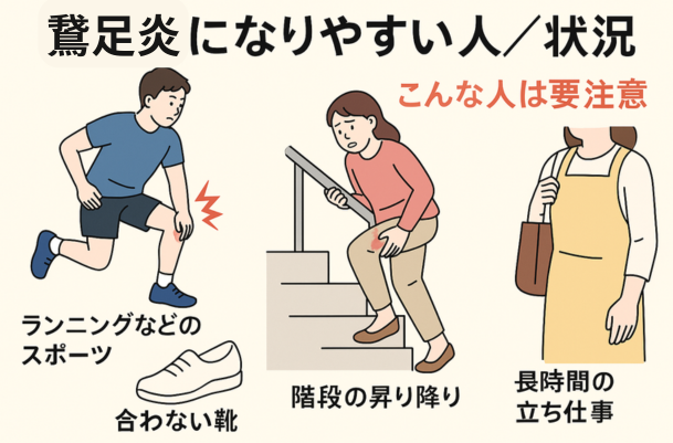 鵞足炎になりやすい人/状況 — こんな人は要注意